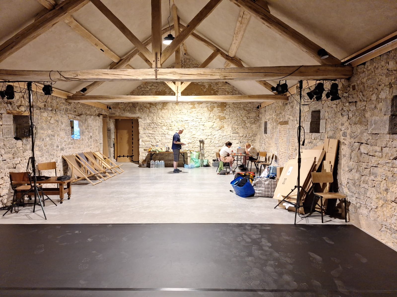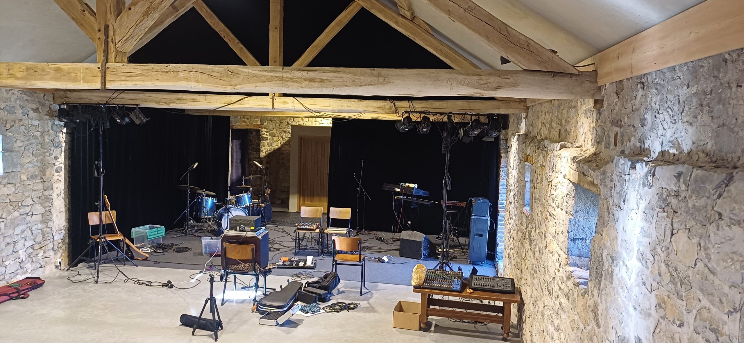 Pour ce volet d’activités, nous avons prévu d’aménager une salle de théâtre dans le fenil de l’aile sud. Le logement aura lieu dans le corps de logis originel qui jouxte ce dernier ; il sera doté d’une cuisine et d’une salle à manger au rez-de-chaussée, ainsi que de quatre grandes chambres et d’une salle de bain à l’étage. Par temps clément les espaces extérieurs seront également à disposition des artistes pour travailler et/ou se détendre.