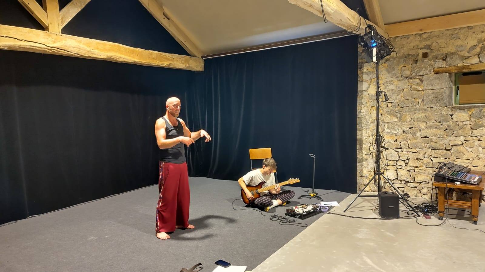 Étant artistes nous-mêmes, nous savons combien il est précieux de pouvoir s’extraire du quotidien pour se consacrer lors d’un temps défini tout à son imaginaire afin qu’éclosent et prennent corps les nouveaux projets de création. Nous avons déjà tenu ce genre de proposition avec notre péniche Le Ventre de la baleine, un lieu de diffusion en activité sur Liège et que nous mettions à disposition pour les résidences d’artistes lorsqu’il était en pause à son lieu d’amarrage en pleine réserve naturelle à la montagne Saint Pierre, pas loin de Maastricht. Ici l’intérêt est que nous ne prêterons pas seulement le lieu mais comme nous y vivrons à l’année, nous pourrons véritablement partager des moments de vie, échanger des savoir-faire, discuter de nos pratiques respectives et créer ainsi une émulation stimulante pour toutes et tous. Habitant au cœur d’un village, nous pourrons inviter les voisins et voisines à assister aux sorties de résidence afin que le public et les artistes puissent se rencontrer. Le public pourra profiter de spectacle gratuitement et en échange donner des avis et des ressentis aux comédiens pour qu’ils puissent mieux avancer dans leur processus de création.